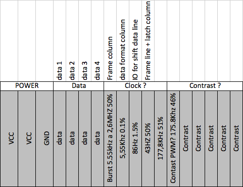 A wiki for programmers and hardware hackers of TI calculators. The documentation of the ASIC and LCD controller were a solid start. The ASIC is sending a continuous stream of pixel data to the controller. There are 128 columns and 64 rows per frame.