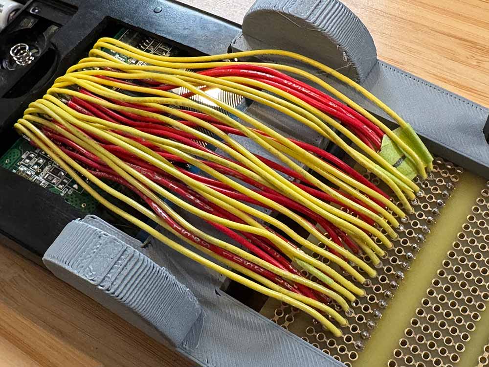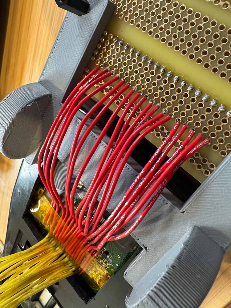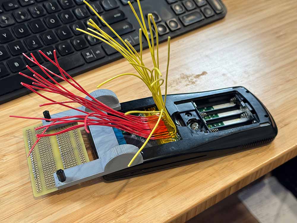 New wires from the mainboard and the screen, reinstalled into the calculator chassis.